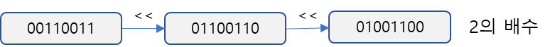 | << | 명시된 수만큼 비트들을 전부 왼쪽으로 이동시킴. (left shift 연산) |