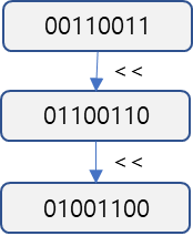 3) 십진수 : 204, 이진수 : 11001100 => flags = flags << 1 한번 수행