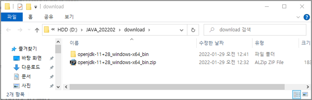 2. 다운로드 받은 파일을 압축을 풉니다.