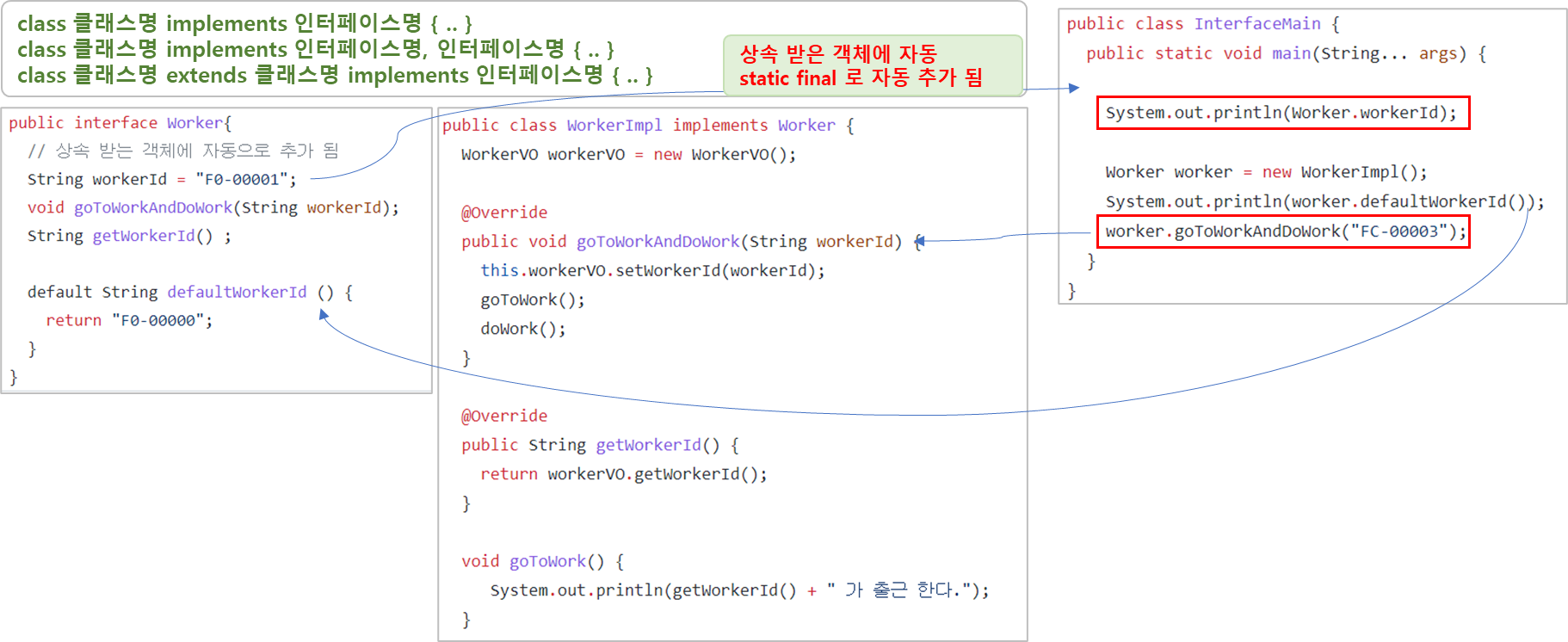 implements는 다중 상속 가능 -> implements 인터페이스명, 인터페이스명