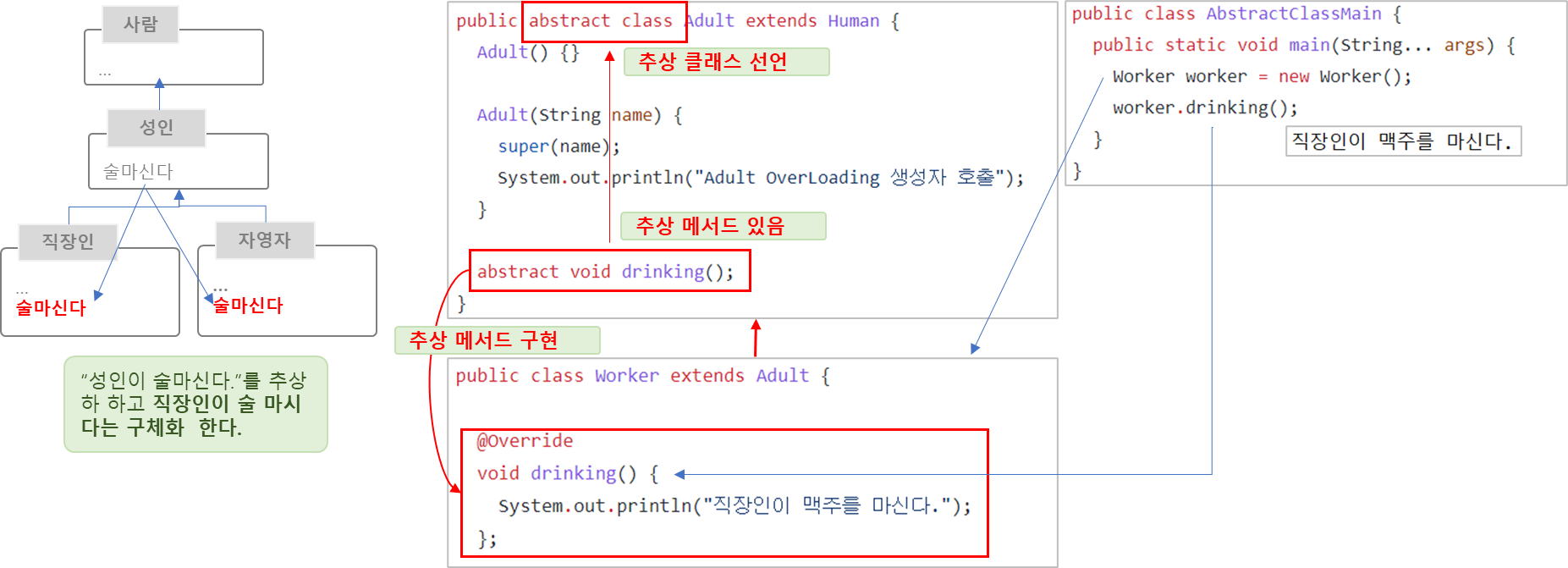 추상 메서드가 1개 이상 포함하고 있는 클래스는 반드시 추상 클래스로 정의해야 한다.